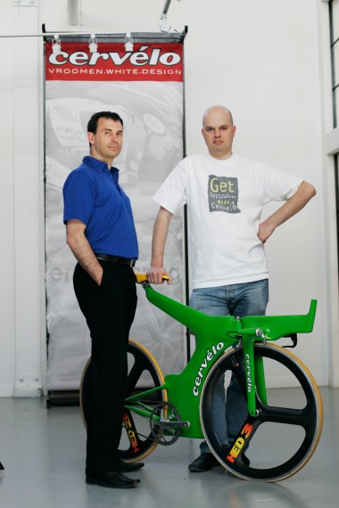 Phil White and I started Cervélo in 1995 on a shoe string budget. Originally my graduation project for an engineering degree, we designed and built a time trial bike for Gianni Bugno, world champion in 1991 and 1992. He liked it, his bike sponsor hated it, so it never saw any action.
